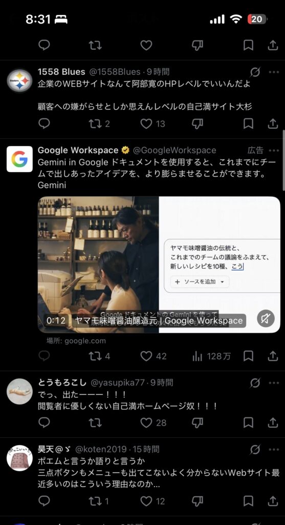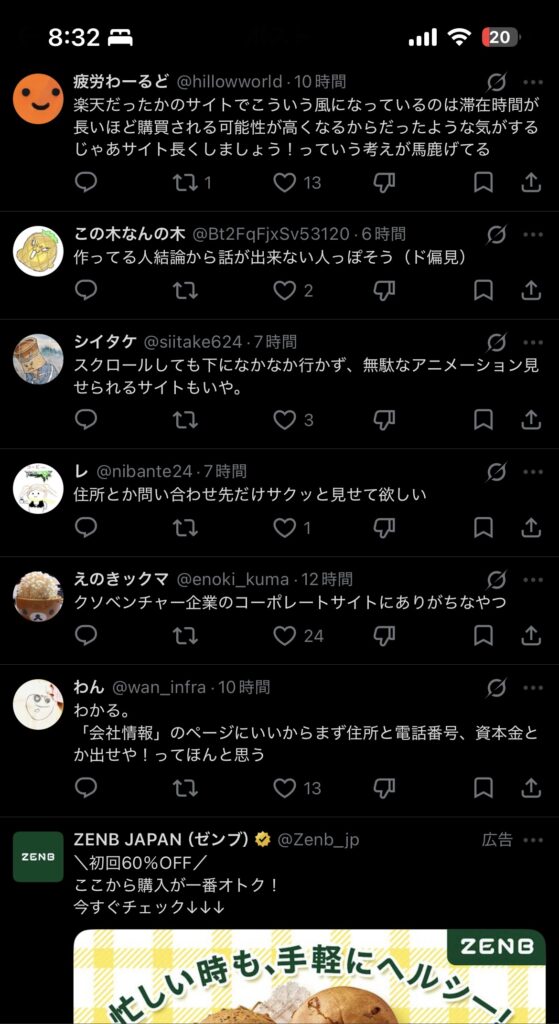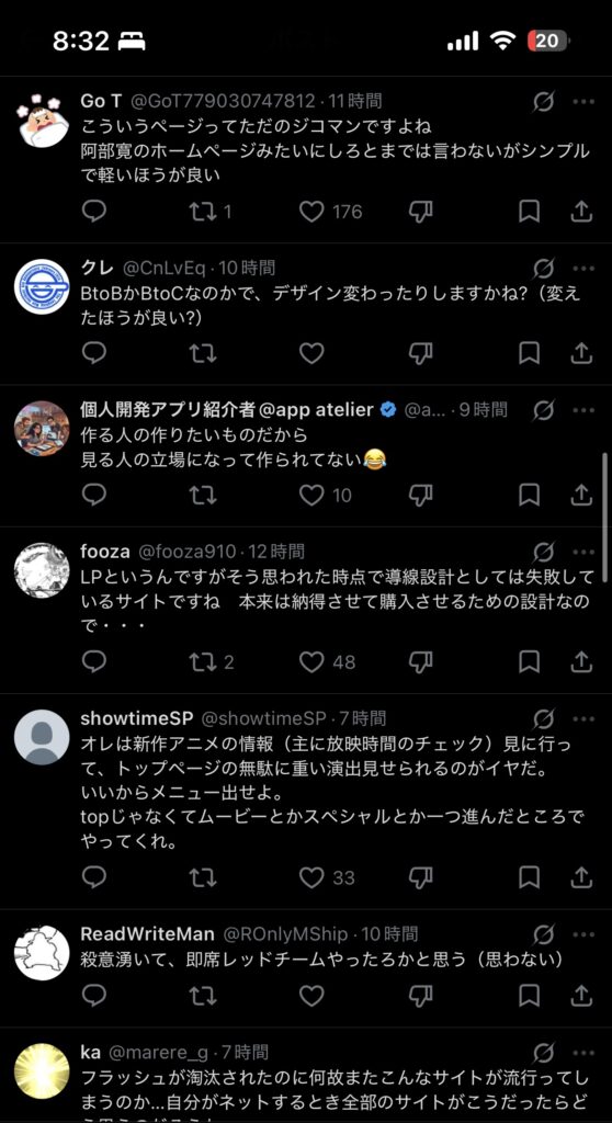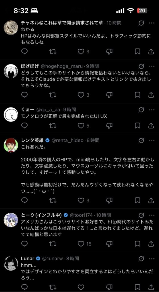 先日、Xで話題になっていた「おしゃれなWEBサイト」に対して、リプ欄では厳しい意見が多く見られました。