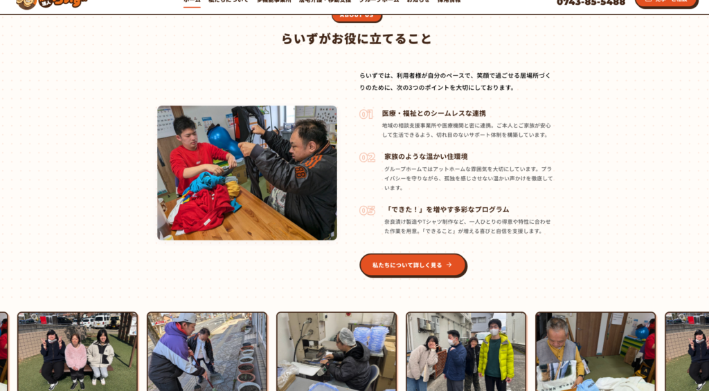 奈良県天理市を拠点に、障がいのある方の自立と安心を支えるグループホームや、各種生活支援サービスを展開されている「特定非営利活動法人らいず」様のコーポレートサイトを新規制作しましたのでご紹介します。